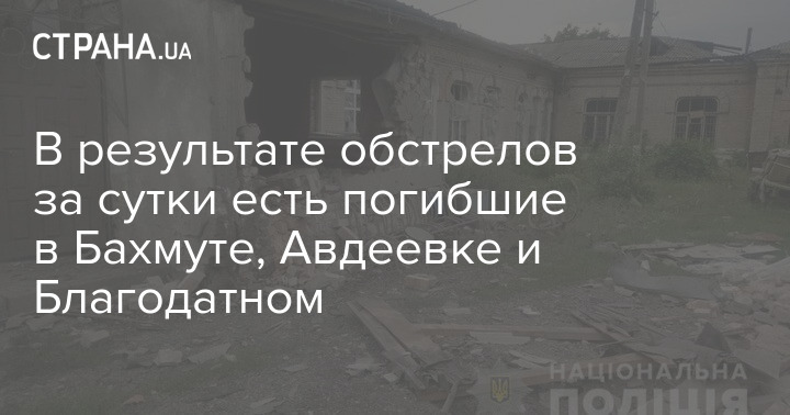 На подконтрольной территории Донецкой области за сутки от обстрелов погибли пять человек - трое в Бахмуте, по одному в Авдеевке и Благодатном.