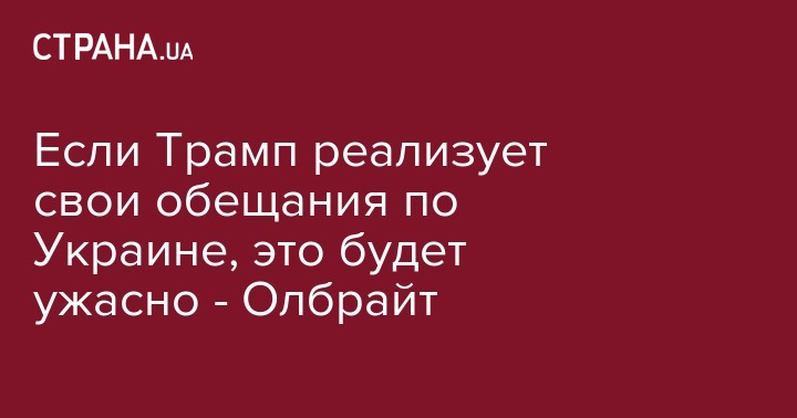 Мадлен Олбрайт считает, что если Трамп подтвердит действиями свои слова об Украине из предвыборной гонки, это будет "просто ужасно".  Об этом сообщает Радио Свобода.