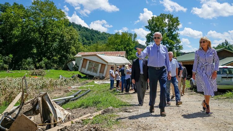Это не единственный сегодняшний курьез с главой Белого дома. Днем он и первая леди отправились в восточный Кентукки, чтобы навестить семьи, пострадавшие от недавнего наводнения. После прилета на место на вертолете Байден долго безуспешно пытался надеть пиджак, после чего уронил солнцезащитные очки.