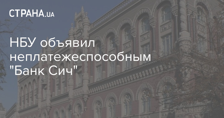 Правление Нацбанка приняло решение объявить АО "Банк Сич" неплатежеспособным в связи с невыполнением банком своих обязательств перед НБУ по кредитам рефинансирования из-за недостаточности средств.