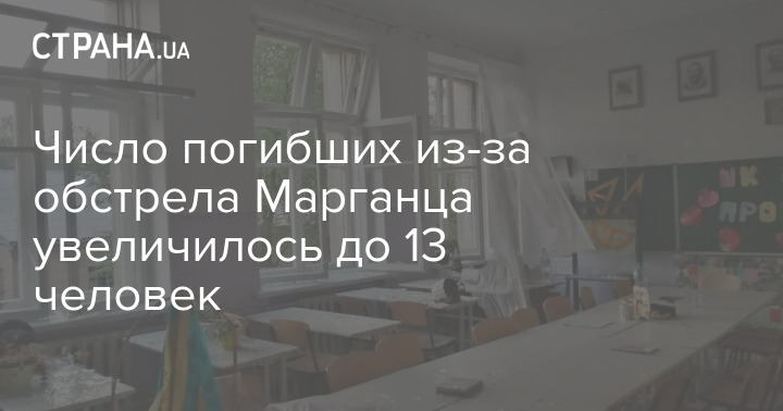 Число погибших из-за обстрела Марганца в ночь с 9 на 10 августа увеличилось до 13 человек. В больнице Марганца умерли двое раненых.