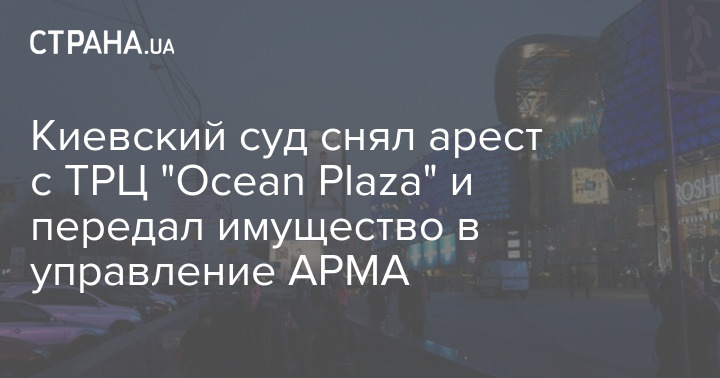Суд снял арест со столичного ТРЦ "Ocean Plaza", имущество передали в управление Украинскому Агентству по розыску и менеджменту активов (АРМА).