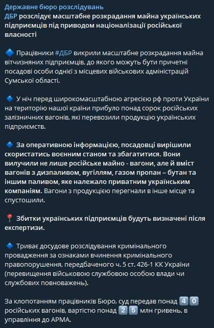 "Вагоны с продукцией перегнали в другое место и опустошили", - сообщают в ГБР.