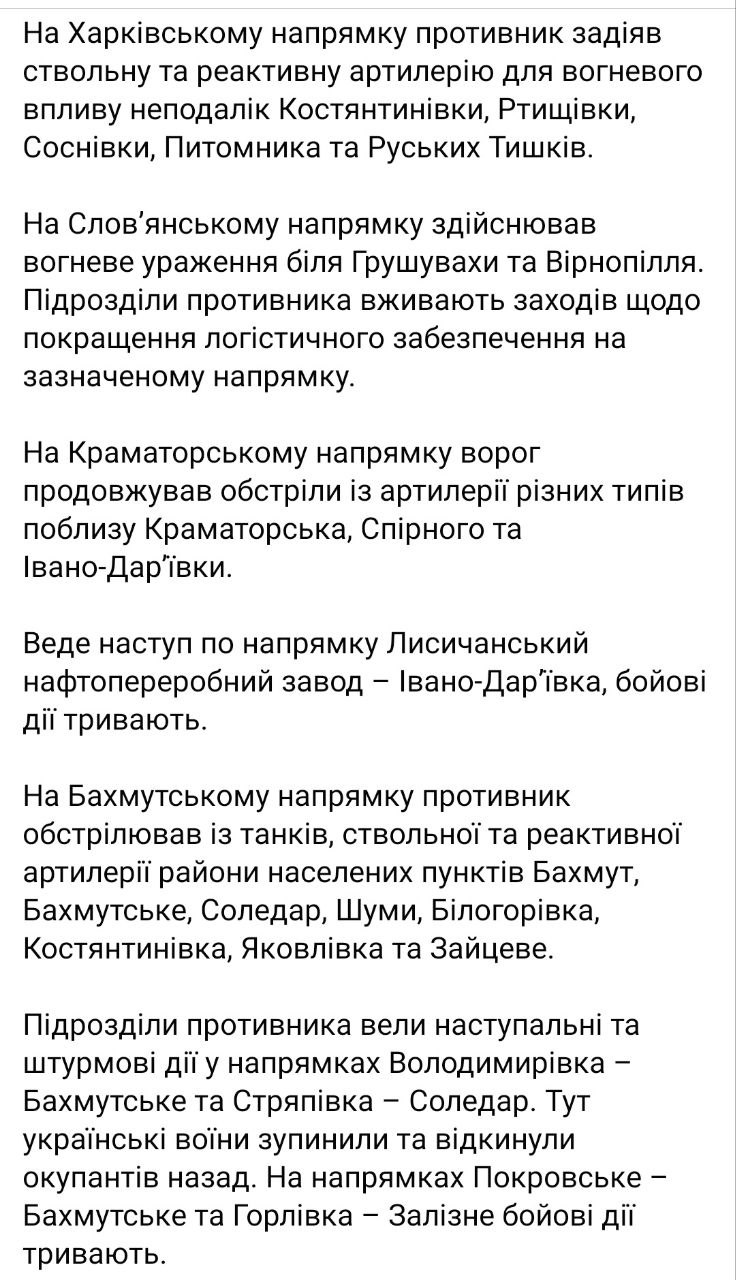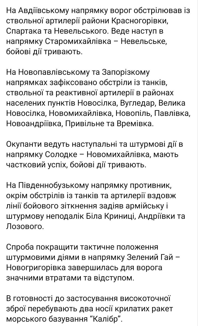 Противник пытался наступать на Донбассе и в Херсонской области, но был отбит. Фото: facebook.com/GeneralStaff.ua