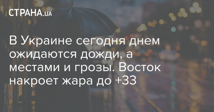 В Украине сегодня днем ожидаются дожди, а местами и грозы. Восток накроет жара до +33