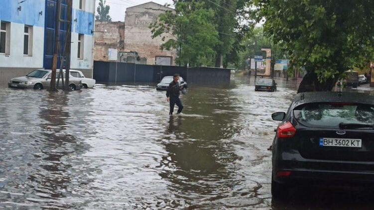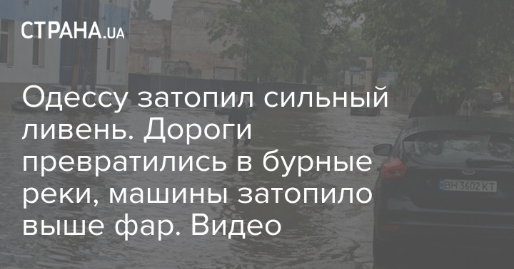 В сети появилось видео одесских улиц, которые превратились в бурные реки и машинам приходится преодолевать потоки воды.