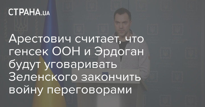 Советник главы Офиса президента Алексей Арестович допустил, что генеральный секретарь ООН Антониу Гуттериш и президент Турции Эрдоган, которые прибыли в Украину, будут уговаривать Владимира Зеленского сесть за стол переговоров по остановке боевых действий.
