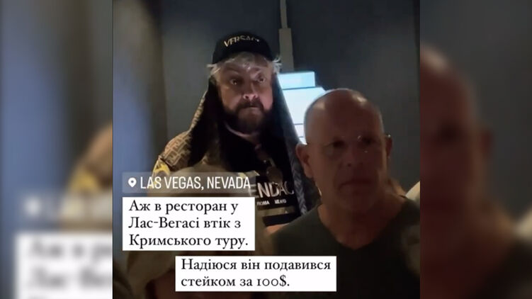 Он говорит, что случайно встретил Киркорова и выкрикнул украинский слоган. Россиянин на услышанное забавно выпучил глаза и уткнулся в телефон.