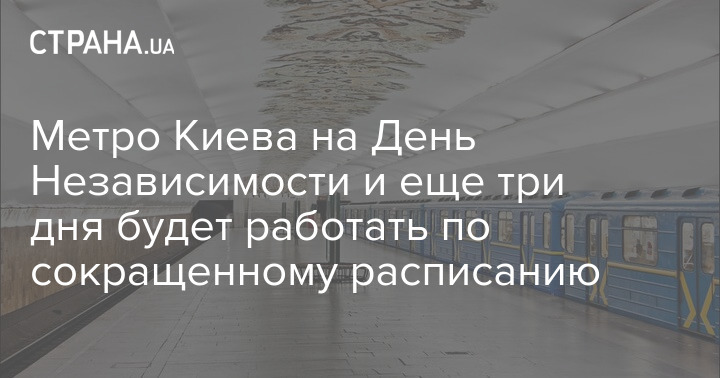 Метро в Киеве с 21 по 24 августа будет закрываться на час раньше - в 21:00.
