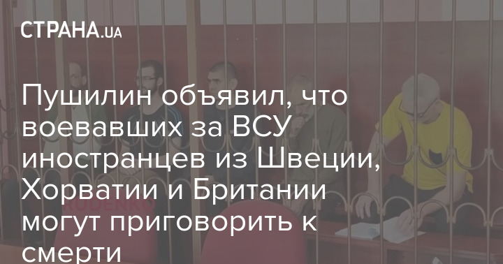 "Глава ДНР" Денис Пушилин заявил, что воевавших за ВСУ иностранцев из Швеции, Хорватии и Великобритании, которых сейчас "судят" в "республике", тоже может ждать смертная казнь, как и уже приговоренных к ней граждан других стран.