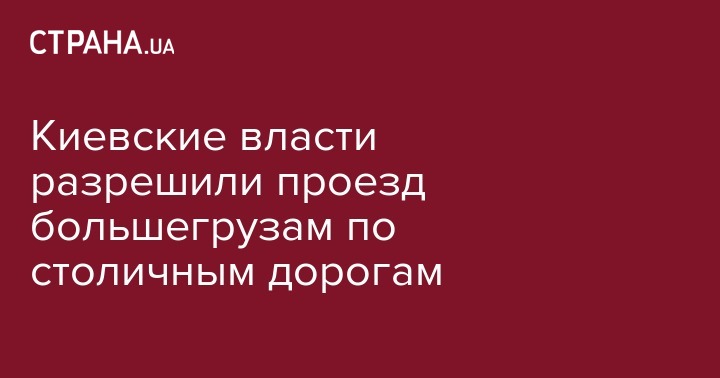 В понедельник, 14 ноября, в 9:30 утра в Киеве разрешили проезд по городским трассам для крупногабаритных автомобилей. Об этом сообщил глава аппарата Киевской городской государственной администрации Владимир Бондаренко, передают Украинские новости.