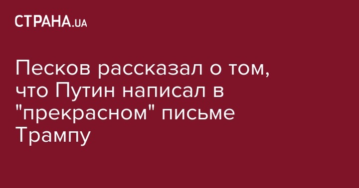 Пресс-секретарь российского президента Дмитрий Песков прокомментировал письмо, отправленное Владимиром Путиным после объявления результатов выборов США Дональду Трампу, которое последний назвал "прекрасным". Об этом сообщает L!fe.