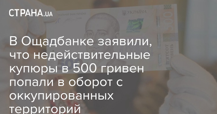 В Ощадбанке сообщили, что недействительные 500-гривневые купюры, имеющие характерные повреждения, попали в оборот в Украине с оккупированных территорий, но отрицают, что эти деньги принадлежат банку, и что их происхождение - Херсонская область.