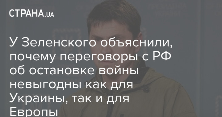 Переговоры с Россией об остановке войны невыгодны как для Украины, так и для Европы, заявил советник главы Офиса президента Михаил Подоляк.