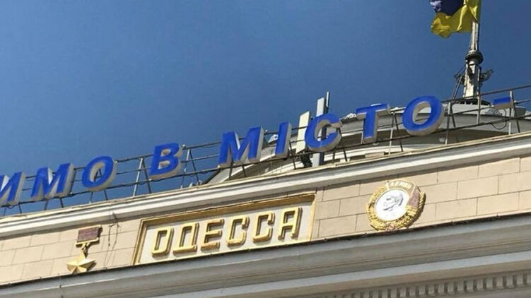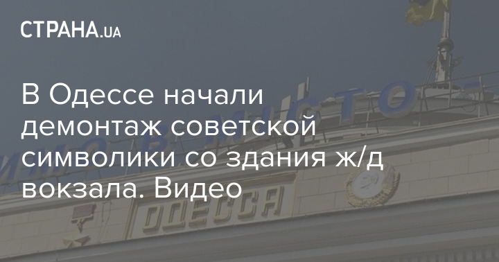 Со здания ж/д вокзала Одессы начали демонтировать советскую символику. Соответствующее видео публикуют местные паблики.