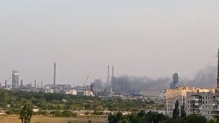 По словам жителей, на заводе предприятия горит рубероид, оккупационные власти заявляют, что химической опасности для населения нет.