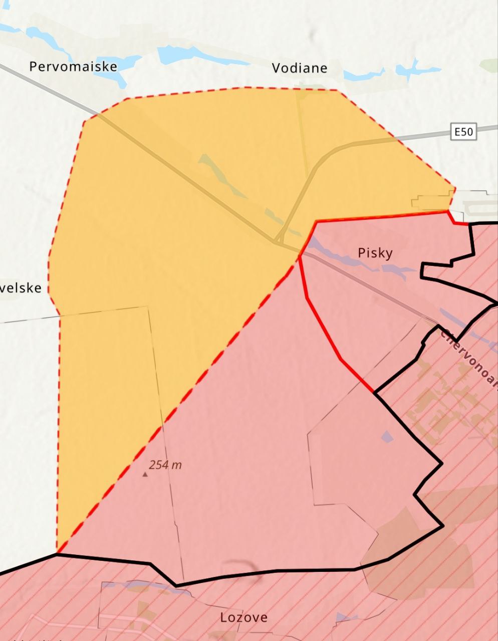 Судя по опубликованной институтом карте, россияне декларируют захват Песок и выход к Первомайскому, Водяному и Невельскому.