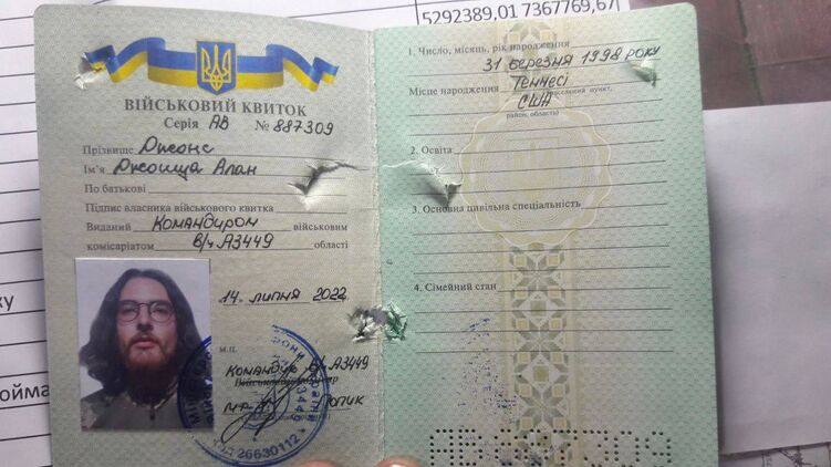 Они также опубликовали фото его американского паспорта и украинского военного билета.