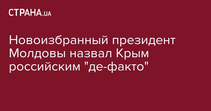Избранный на недавних выборах президент Молдавии Игорь Додон еще раз заявил о своей позиции по аннексированному Крыму. В интервью "Эхо Москвы" он заявил, что Крым – де-факто российский, а де-юре – непризнанный.