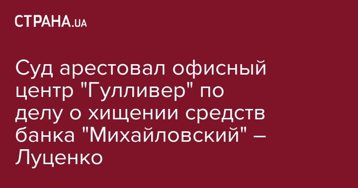 "В ходе расследования хищения банка "Михайловский" установлено, что владельцем банка является ООО "Экосипан", 92,5% которого является собственностью Полищука В.С. Сегодня по представлению столичной прокуратуры Шевченковский райсуд Киева принял решение о наложении ареста на собственность В.Полищука - имущественный комплекс "Гулливер"", - написал Ю.Луценко на своей странице в Фейсбук в понедельник.