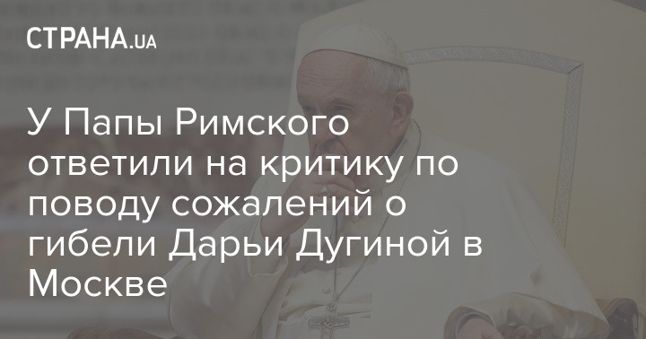 У Папы Римского ответили на критику по поводу сожалений о гибели Дарьи Дугиной в Москве