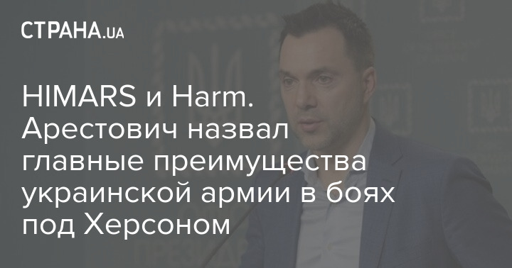 Советник главы Офиса президента Алексей Арестович заявил, что главное для ВСУ на юге не наземное наступление, а удары "Хаймарсами", управляемыми снарядами Excalibur и авиационными ракетами Harm.