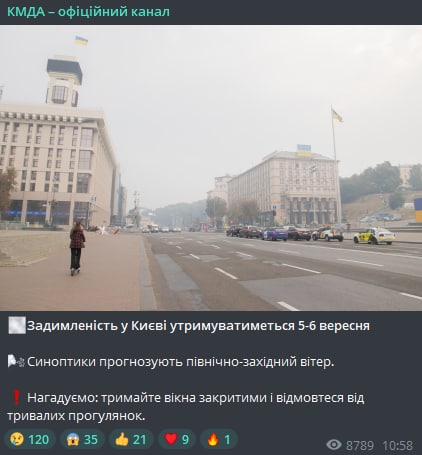 Отметим, что столица страдает от запаха гари и задымления с начала сентября, когда Киев стал регулярно попадать в десятку самых грязных городов мира по качеству воздуха. Причиной стали торфяные пожары в области. 4 сентября продолжалась ликвидация возгораний вблизи сел Сосновка и Лесное Вышгородского района.