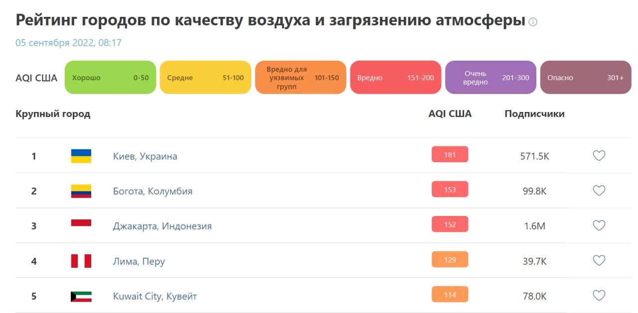 Киев 5 сентября стремительно поднялся с четвертого на первое место по уровню загрязнения воздуха из-за горящих торфянников на севере и востоке от столицы.