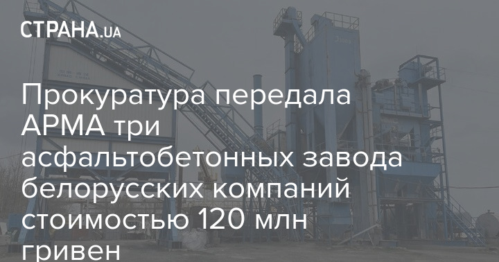 Прокуратура передала в АРМА три асфальтобетонных завода белорусских компаний, которые работали в Киеве, Житомирской и Николаевской областях.
