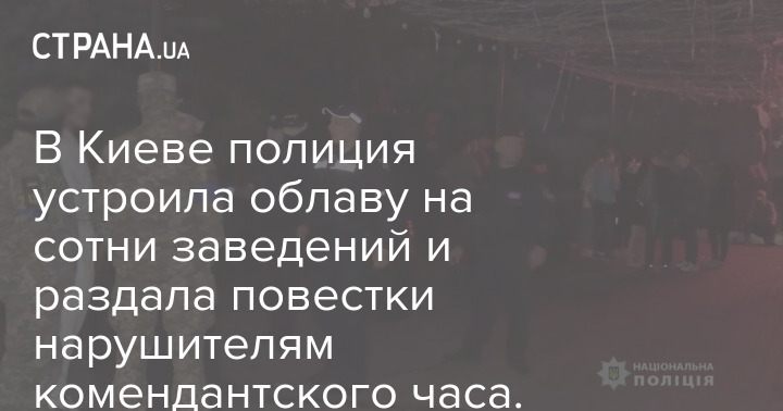 В Киеве полиция провела рейд по развлекательным заведениям и раздала повестки нарушителям комендантского часа. 427 заведений проверили на предмет соблюдения нового правила, которое требует закрываться в 22:00, но нарушений не обнаружили.