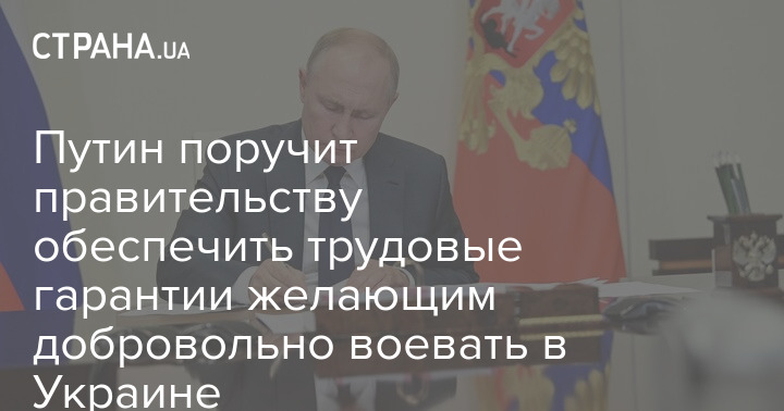 Президент России Владимир Путин поручит правительству РФ обеспечить трудовые гарантии гражданам, желающим пойти добровольцами для участия в войне с Украиной.