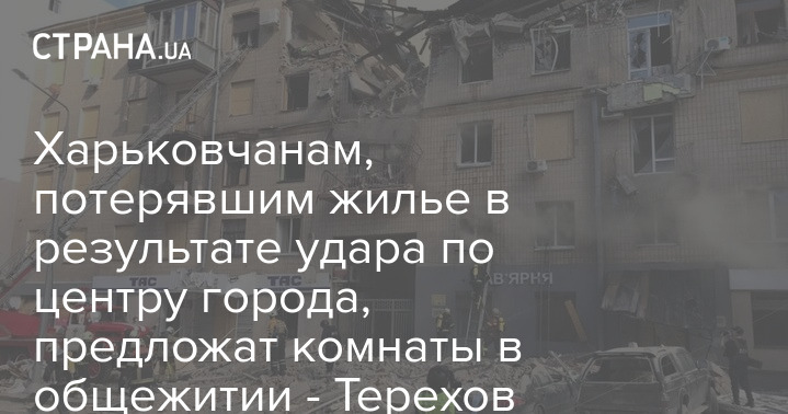 Харьковчанам, потерявшим жилье в результате удара по центру города, предложат комнаты в общежитии - Терехов