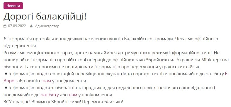 10.17 Жителей Балаклеи призвали соблюдать информационную тишину.