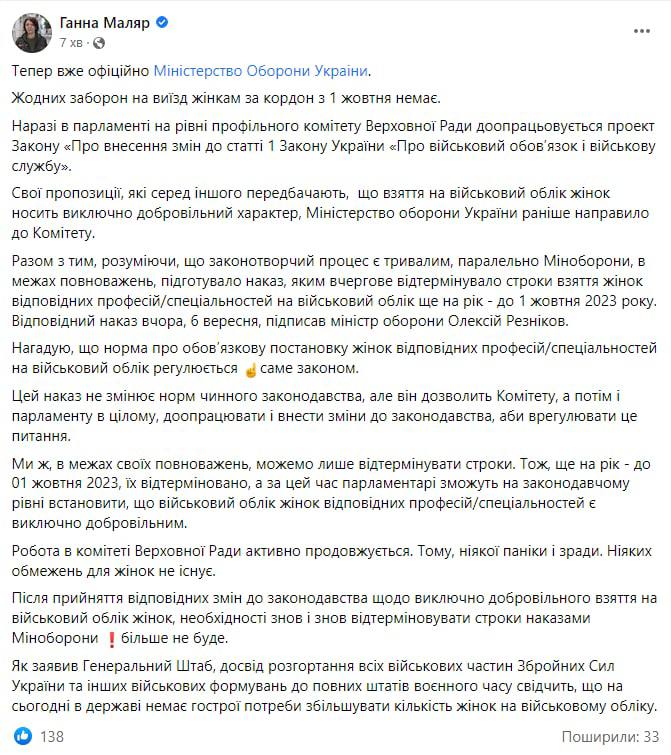"Ни одной женщины на фронте принудительно нет сегодня. На переднем крае у нас около 5 тысяч женщин сейчас, а в целом в ВСУ больше 30 (тысяч)", - заявила Маляр.
