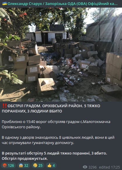 О том же говорится в заявлении члена назначенного РФ "руководства" Запорожской области Владимира Рогова.