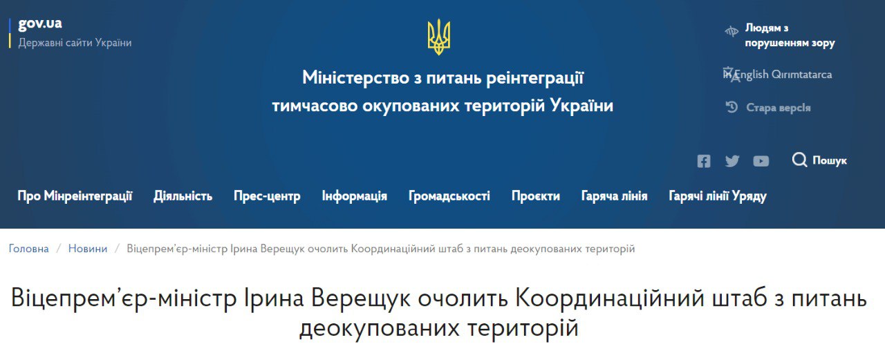 22:22 Вице-премьер Ирина Верещук, которая сегодня возглавила Координационный штаб по вопросам деоккупированных территорий, в комментарии "Стране" объяснила, чем именно будет заниматься на новой должности.