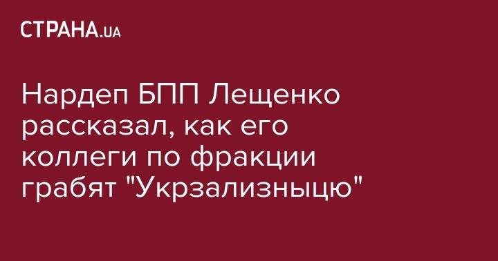 "Транспортная отрасль остается одной из самых коррумпированных в государстве, с которой кормятся несколько кланов, которые принадлежат к Блоку Порошенко и Народному фронту", - заявил Лещенко на брифинге в парламенте.
