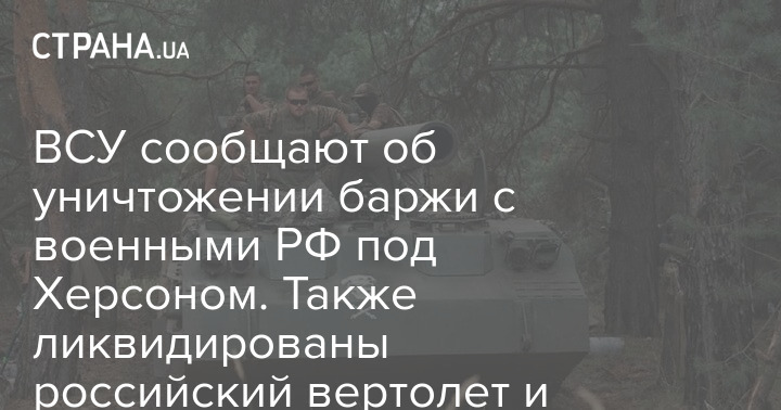 ВСУ сообщают об уничтожении очередной переправы через Днепр в Херсонской области. В районе Голой Пристани была поражена баржа c военными и боевой техникой на борту.