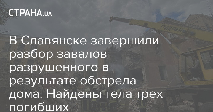В Славянске завершили разбор завалов разрушенного в результате обстрела дома. Найдены тела трех погибших