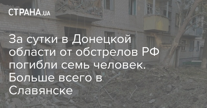 За минувшие сутки в результате обстрелов РФ в Донецкой области было убито семь человек. Еще два человека получили ранения.
