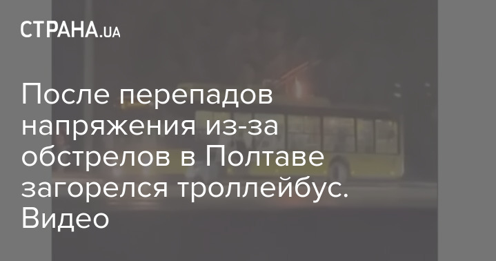 В Сети появилось видео горящего троллейбуса в Полтаве. Короткое замыкание произошло из-за перепада напряжения после того, как во многих городах востока Украины, подвергшихся обстрелам, пропал свет.