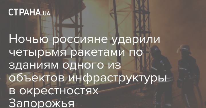 В ночь с 11 на 12 сентября российские войска нанесли удар по Запорожью. Сообщается, что около 00:40 четыре ракеты С-300 поразили здания одного из объектов инфраструктуры в окрестностях города.