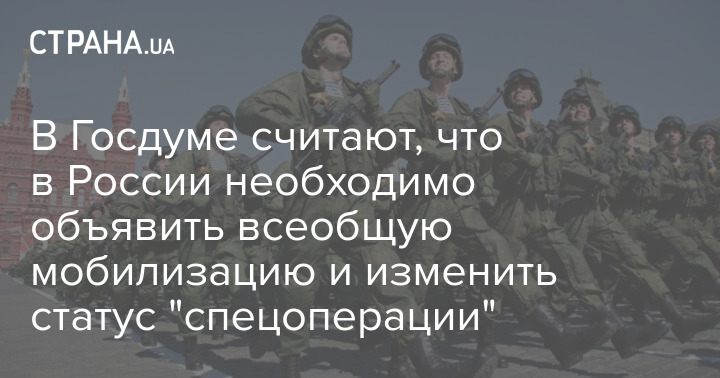 Депутат Госдумы РФ Михаил Шеремет заявил, что в России нужно поменять статус "специальной военной операции" и объявить всеобщую мобилизацию.