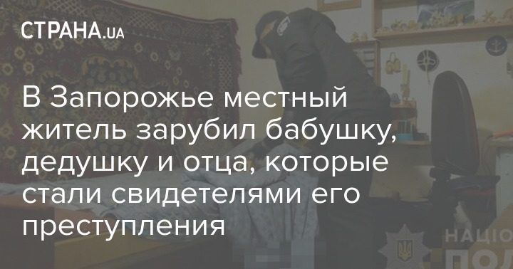 В Запорожье местный житель зарубил трех своих близких родственников, невольно ставших свидетелями его преступления. Убийство произошло в 5 утра 11 сентября в частном доме по улице Красногорская.