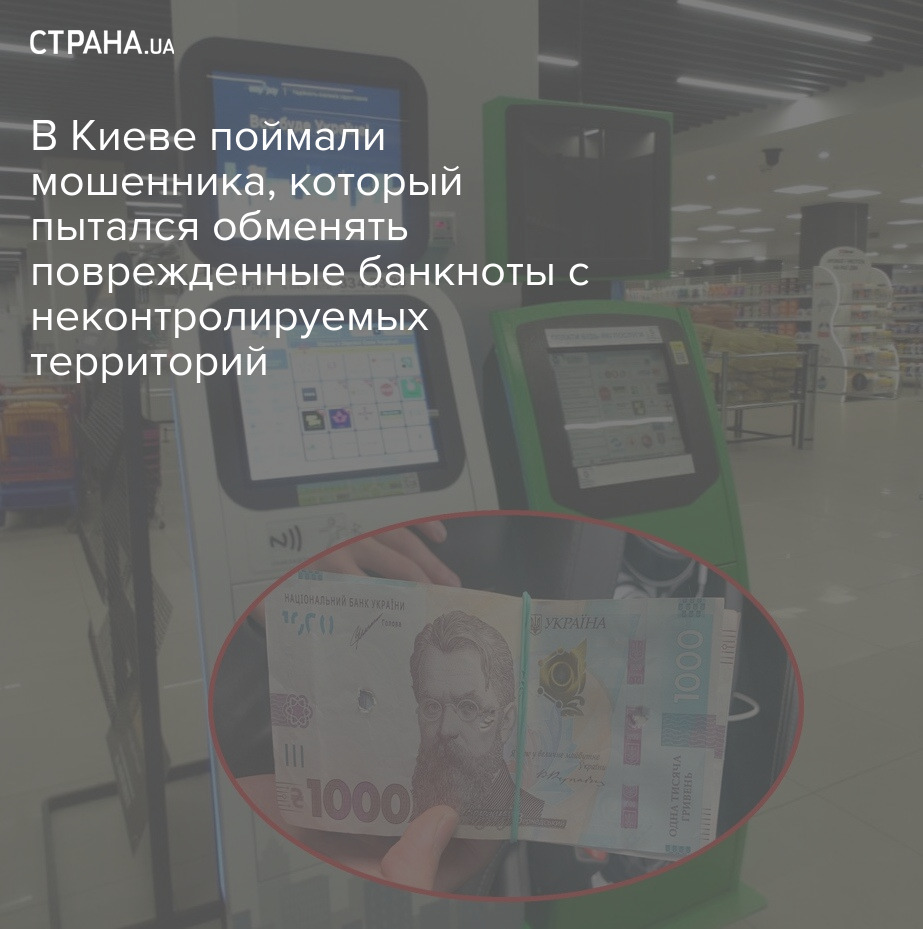 В Киеве разоблачили мошенника, который пытался обменять поврежденные банкноты с оккупированных территорий на 40 тысяч гривен.