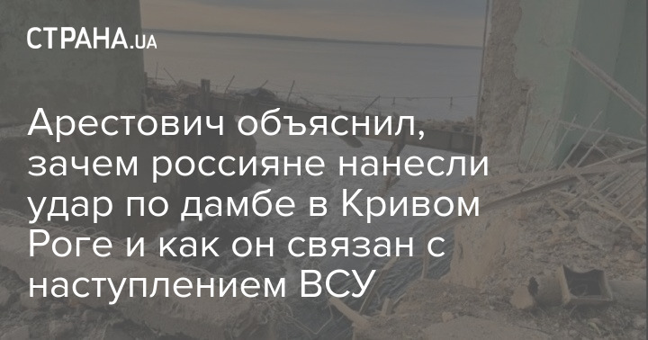 Советник Офиса президента Алексей Арестович заявил, что россияне нанесли удар по дамбе в Кривом Роге, чтобы поднявшаяся вода в реке Ингулец смыла украинские переправы, которые ВСУ наводят для наступления в Херсонской области.