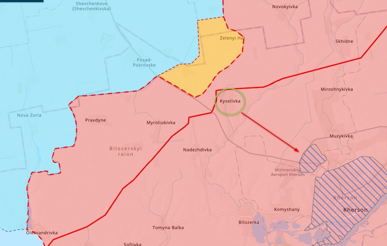 Вчера вечером глава Херсонского облсовета Александр Самойленко заявил, что во вторник ВСУ освободили Киселевку. По его словам, единственный населенный пункт, разделяющий теперь украинскую армию и город Херсон – это Чернобаевка.
