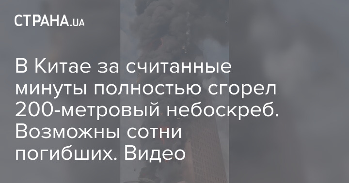 В Китае за считанные минуты полностью сгорел 200-метровый небоскреб. Возможны сотни погибших. Видео