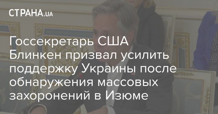 Госсекретарь США Энтони Блинкен заявил, что после обнаружения массовых захоронений в Изюме необходимо усилить поддержку Украины. Об этом он написал в Twitter.
