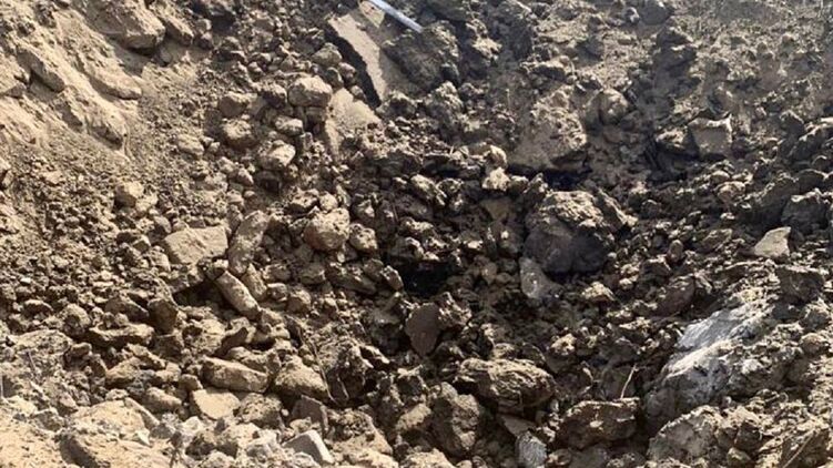 Воронка от ракетного обстрела. Фото: Синегубов в Telegram